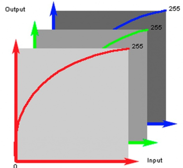 R輸入0,輸出為3;G輸入1,輸出為2;B輸入2,輸出3。每一個輸入值都準(zhǔn)確對應(yīng)一個輸出值,這就是1D LUT,所以如果某個像素的RGB輸入值是3,1,0,它的輸出值將為9,2,0。如果R的輸入值變成了2,但是G和B保持不變,那么只有R的輸出值會改變,這時候像素的輸出值為7,2,0。